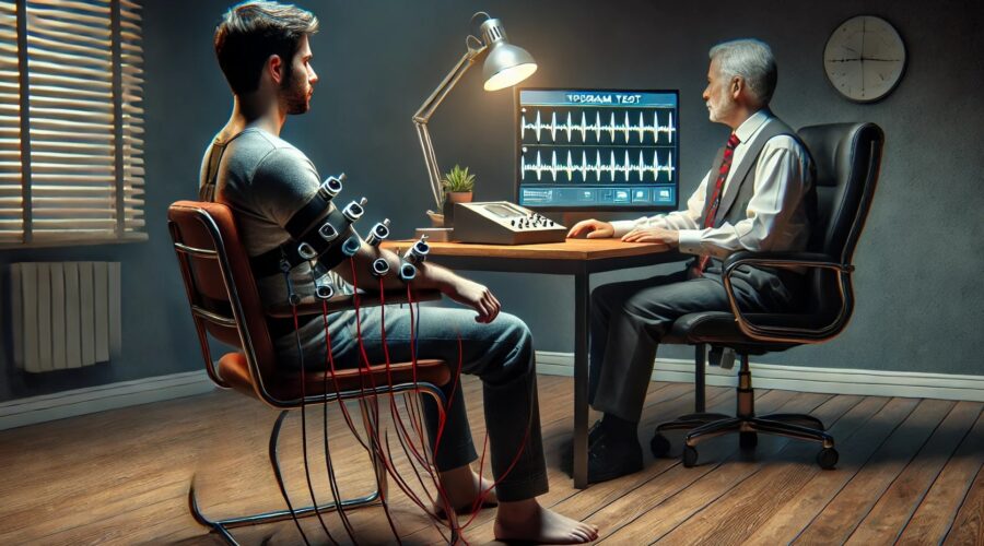 Поліграф — це пристрій, який вимірює реакції організму (частоту серцебиття, дихання, тиск, потовиділення тощо) під час відповідей людини на спеціальні запитання. Експерт аналізує отримані дані, щоб визначити, чи є у відповідях ознаки обману або стресу, викликаного неправдивими твердженнями.